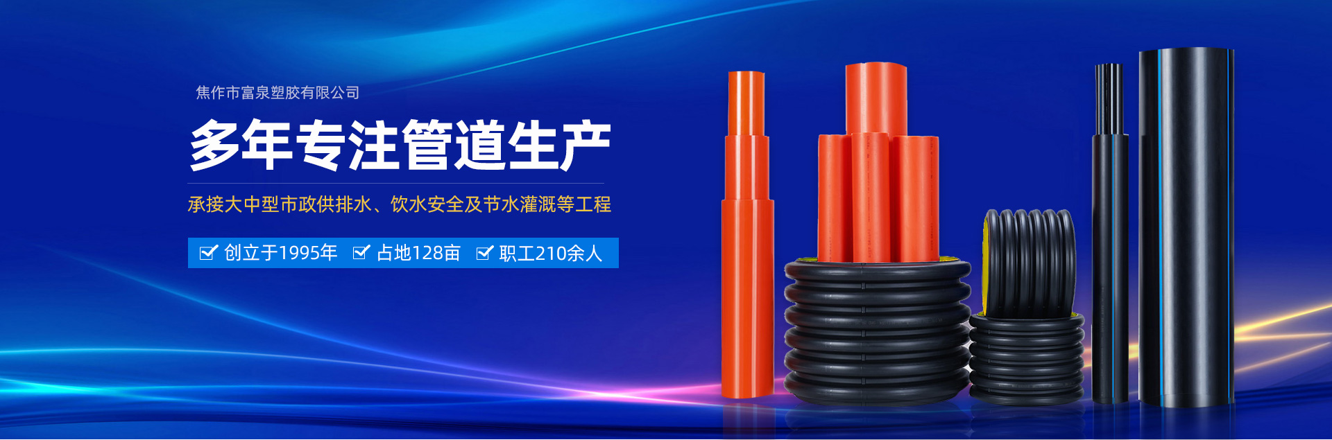 - 焦作市富泉塑膠有限公司,創(chuàng)立于1995年,是一家集研發(fā)、設計、生產、銷售為一體的大型管材企業(yè)。公司位于太極故里、黃河之濱一一河南焦作溫縣。公司占地128畝,現有職工210余人,其中具有中技術職稱的19人。生產、檢驗設備58臺(套),包括PVC實壁管生產線11套、PE實壁管生產線12套、HDPE雙壁波紋管生產線6套、PVC雙壁波紋管生產線5套,檢驗設備14臺(套)。主要產品有:Φ20mm-630mm、各種壓力規(guī)格的PVCU、PVC-M、PE給水管材,PVC-U節(jié)水灌溉管材,HDPE燃氣和礦用管材,DN200-800mm的HDPE、PVC雙壁波紋管及各種噴灌、滴灌工程材料。承接大中型市政供排水、飲水安全及節(jié)水灌溉等工程。 富泉塑膠公司重視產品的質量、安全、環(huán)保和節(jié)能,在同行業(yè)中率先完成了“新華節(jié)水產品認證”,全方面通過ISO9001:2008國際質量管理體系、IS014001:2004環(huán)境管理體系和OHSAS18001職業(yè)健康安全管理體系的一體化導入,并建立起規(guī)范的現代企業(yè)管理體系。公司以“質量”為先導,采用質量跟蹤、多環(huán)節(jié)把關的方法,組建具有行業(yè)水準的企業(yè)技術檢測中心,常年委托水利部節(jié)水灌溉設備檢測中心、河南省產品質量監(jiān)督檢驗院對產品跟蹤檢測,并由中國人民保險公司承保產品質量。公司連續(xù)多年被河南省水利廳確定為“安全飲水設備、節(jié)水灌溉設備”定點生產企業(yè),并獲得“中國名優(yōu)產品”“質量、服務、信譽AAA企業(yè)”“河南省**產品”“河南省水利企業(yè)”“河南省守合同、重信用企業(yè)”等榮譽稱號。 富泉塑膠公司堅持“用戶為上”的服務理念,長期以來,全方面關注客戶價值,不斷提升服務水平。服務隊伍常年為客戶的產品設計、施工、安裝提供合理的方案和全程細致、周到、**、快捷的技術服務。公司自成立以來,一直堅持以人為本的宗旨,塑造企業(yè)形象,并致力于新產品的開發(fā),憑借雄厚的技術開發(fā)能力,先進的工藝制造流程,嚴格的質量管理保證體系,優(yōu)良的售后服務網絡,已成為河南省大的飲水、灌溉及排水管材設備制造商。產品暢銷全國,而且還以公司雄厚的綜合實力在業(yè)界中占據著重要的地位。